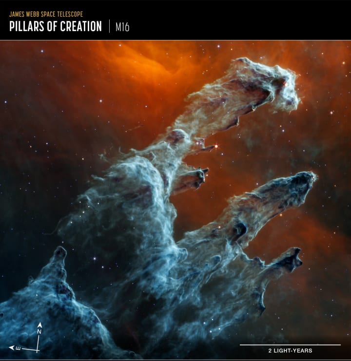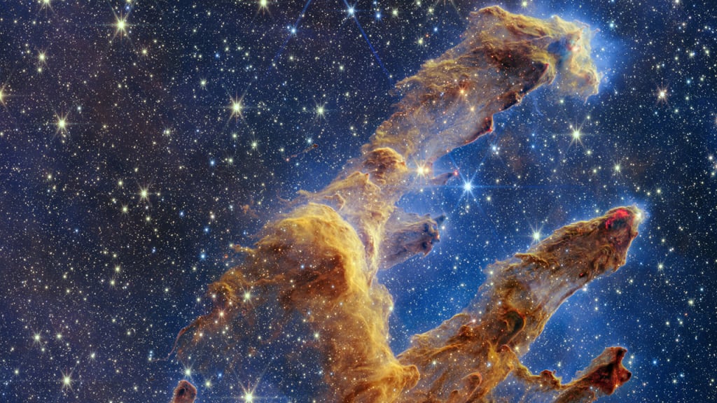 And eventually, by combining images from two cameras aboard the James Webb Space Telescope, the Pillars of Creation has been framed in all of its infrared glory: