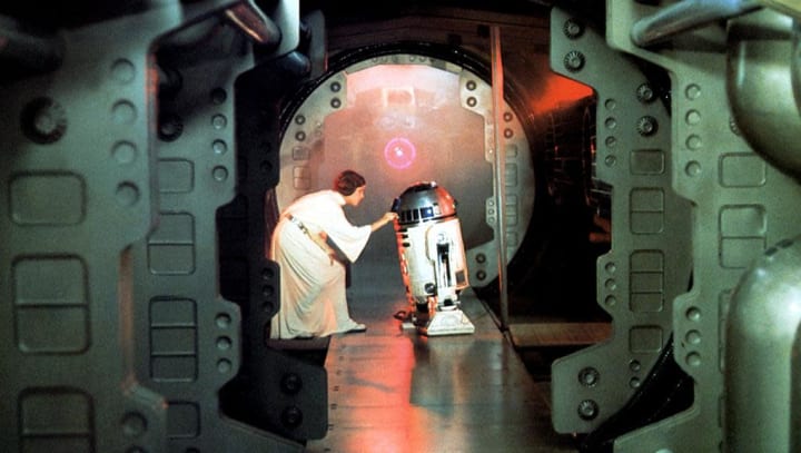 Princess Leia with R2-D2 in A New Hope. [Credit: Lucasfilm/Disney]