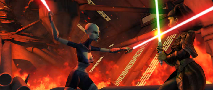 Since 1977, lightsaber battles are a staple of Star Wars and the "Battle of the Heroes” between Obi-Wan and Anakin in Episode III will probably forever be the gold-standard for lightsaber duels. The Clone Wars TV-series had quite a number of occasions where these legendary weapons clashed. Wookieepedia lists 35 episodes, plus the 2008 theatrical movie, that featured at least one lightsaber duel. It would not be possible to rank them all, but today we are going to look at the 10 best of them.
