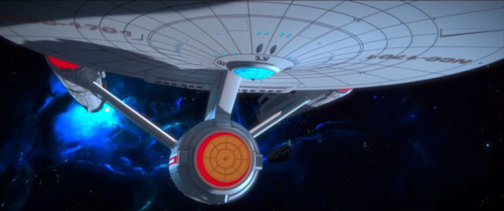 We get glimpses of familiar and memorable Trek episodes and movies, or versions of them, even using original sound clips to accompany the new animation. For those following, the adventures we see are “Space Seed,” “The Naked Time,” “The Trouble With Tribbles,” “Who Mourns For Adonais?” “The Doomsday Machine,” “The Tholian Web,” “The Savage Curtain,” The Wrath of Khan and The Search for Spock. How the eggs manage to stay undiscovered for twenty years, through a ship-wide refit, is anyone's guess, but it's a wonderfully nostalgic run through of favourite moments from the early years of the franchise. There are some stylistic choices that mean the shots don't quite fit with the established events, but that's not really here nor there, although the error of the Enterprise's registration is a glaring one.
