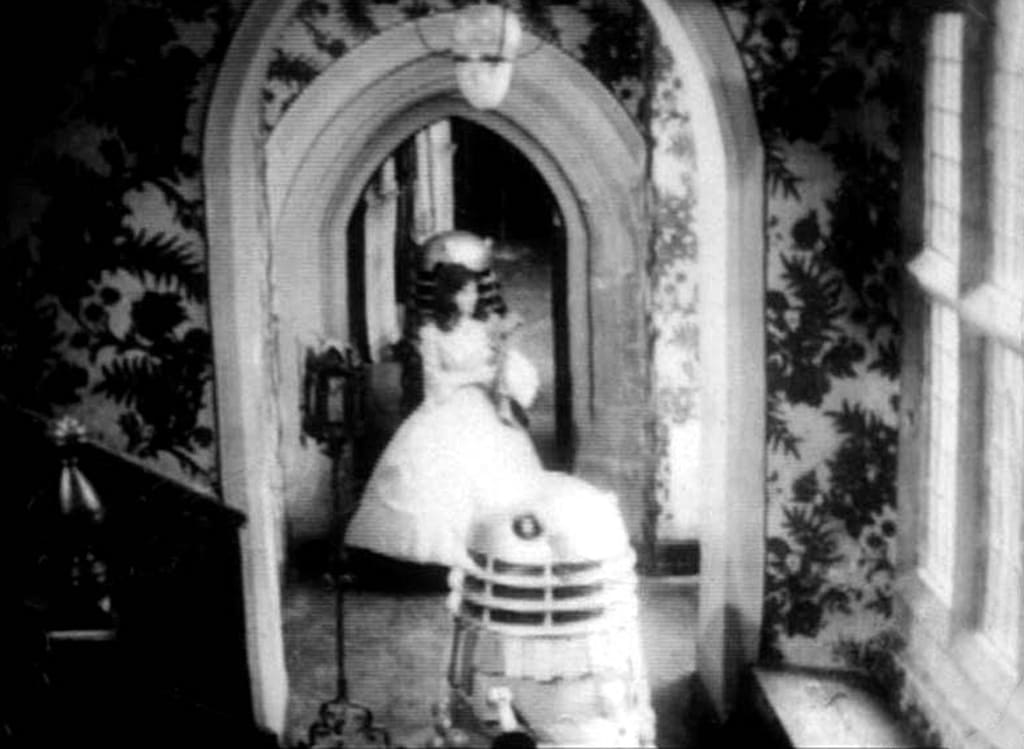 What a wonderful image that is, as we see the slightly elevated view of the Victorian hallway, Victoria in full enormous period dress, gliding along with a Dalek! It's one of those 'only in Doctor Who' moments. I was lucky enough last week that my tv was working properly and I was able to watch the full episode, but sadly this week it's back to intermittent images (I've travelled in time, newcomers, just humour me). I honestly think we are really missing out by not being able to see this story in full. It's turning out to be one of my favourites so far.