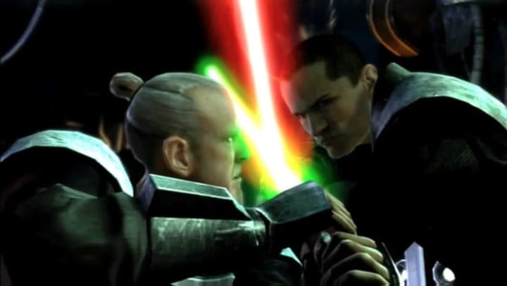 Rahm Kota duels Starkiller in 'Star Wars: The Force Unleashed' [Credit: LucasArts]