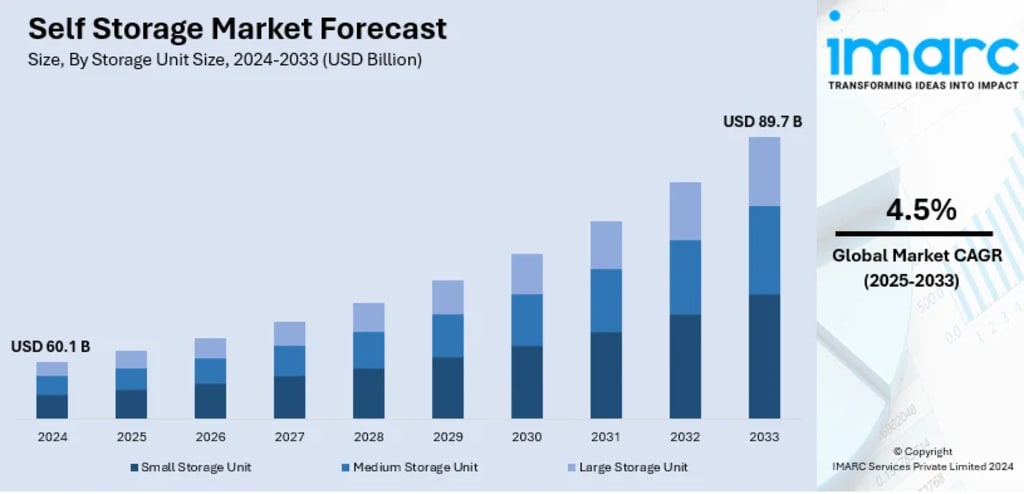 Rising urbanization, limited living space in major cities, and growing demand from small businesses and e-commerce operations are driving steady expansion in the self storage market, supported by lifestyle shifts, frequent relocations, and increasing preference for flexible, month-to-month storage solutions. According to IMARC Group's latest data, the global self storage market size was valued at USD 60.1 Billion in 2025. Looking forward, IMARC Group estimates the market to reach USD 89.7 Billion by 2034, exhibiting a CAGR of 4.5% during 2026-2034. North America currently dominates the market, holding a market share of over 47.8% in 2024.