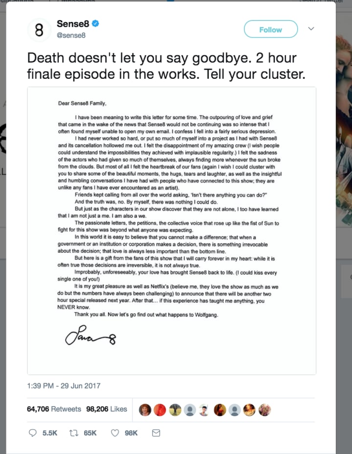 Dear Sense8 Family,