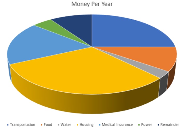 Money: The average US salary is $31,000 per year before taxes. Having this job assumes that you have previously purchased transportation (the average car payment is $5,760/year), actively maintain its functionality and legality (let’s lowball at $700/year), and constantly refuel your vehicle (let’s estimate $1,300/year). You still need food, water, housing, medical insurance, and power. Those numbers add up to $20,250 (3000, 850, 9500, 5500, 1400 respectively). Assuming you have a car and rent payment, you are left with a precious $2,990 (<10% of your salary) for whatever you want to buy for the entire year. Don’t spend it all in one place! Oh, and don’t forget about your cell phone, data plan, internet plan, computer, pets, children, spouse, etc.!