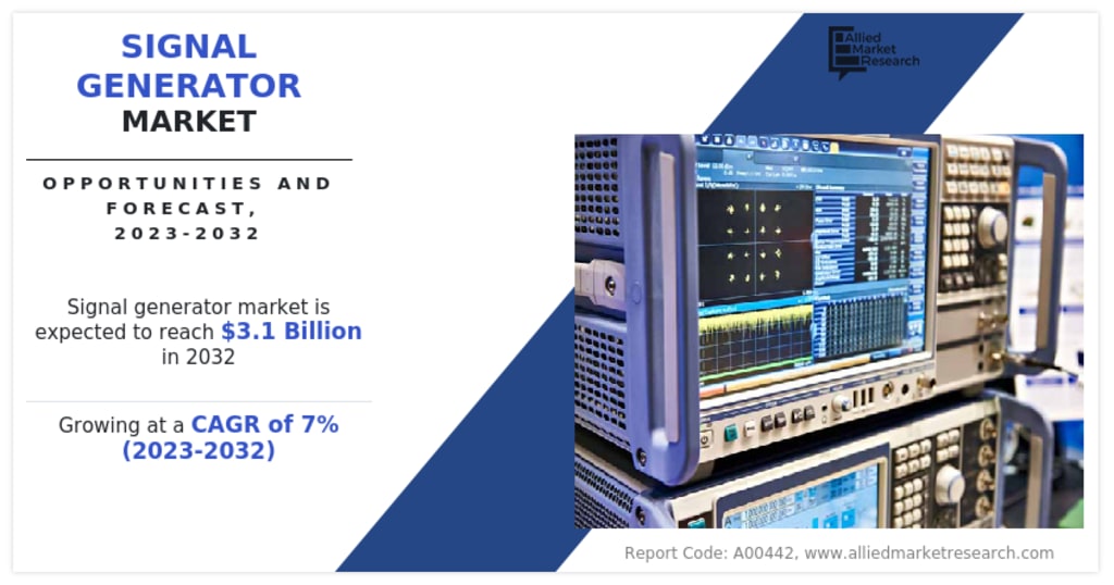 Allied Market Research, titled, “Signal Generator Market by Type, Application, and Industry Vertical". The signal generator market was valued at $1.6 billion in 2022, and is estimated to reach $3.1 billion by 2032, growing at a CAGR of 7% from 2023 to 2032.