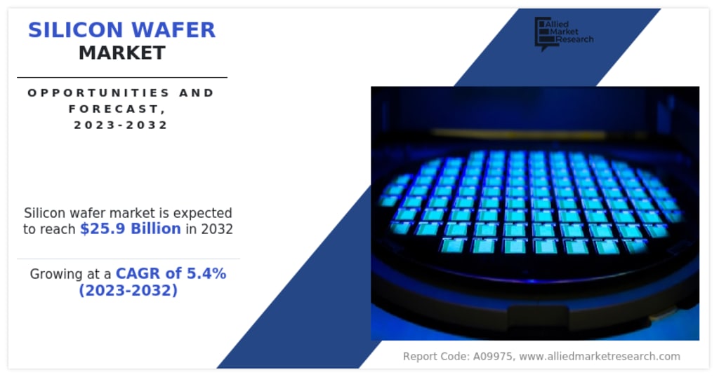 Allied Market Research, titled, “Silicon Wafer Market By Type, Wafer Size and Application: Global Opportunity Analysis and Industry Forecast, 2023-2032", the silicon wafer market was valued at $15.4 billion in 2022, and is estimated to reach $25.9 billion by 2032, growing at a CAGR of 5.4% from 2023 to 2032.