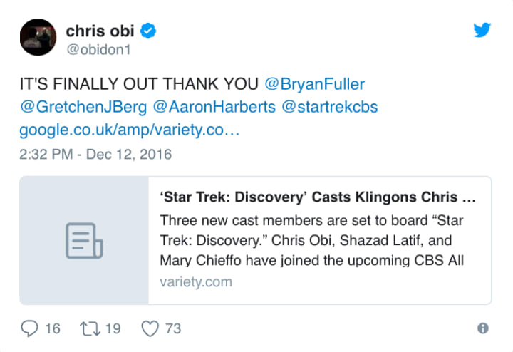 The very first casting news for Star Trek: Discovery was a surprise — #MichelleYeoh will be playing Captain Han Bo, but she won't be sitting on the helm of the U.S.S. Discovery. Instead, she's Captain of the U.S.S. Shenzhou! As my fellow Creator Eleanor has observed, that means the cast of Star Trek: Discovery are divided across two ships; a twist we've not seen in Star Trek fiction before.