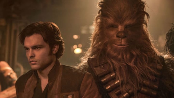 Hot off the heels of the rather divisive The Last Jedi, fans were treated to Solo: A Star Wars Story. This latest Star Wars spin-off film followed the adventures of Han and Chewbacca as they began their careers as the smugglers we have come to know and love. The story began with Han on the streets of his homeworld Corellia prior to his joining the Imperial Navy. Like his Legends counterpart, Han was still portrayed as a skilled pilot. However, his career as Imperial pilot was cut short when his rebellious antics quickly got him demoted to what was essentially canon fodder for the Imperial Army. Shortly thereafter, Han was sentenced to death for desertion, doomed to be food for a mysterious being known only as “the beast.” The creature in the pit turned out to be a certain Wookiee named Chewbacca, who after being captured by the Empire was forced to become a pit fighter for their enjoyment. Starved and abused, the Wookiee was quick to set upon his latest victim. He hesitated when Han began pleading in Shyriiwook. Using the Wookiee native language, the two quickly hatched a plan, and ultimately managed to escape their prison together. Just like in Legends, Chewbacca swore a life debt to Han, and the two began their lives on the run from the Empire.