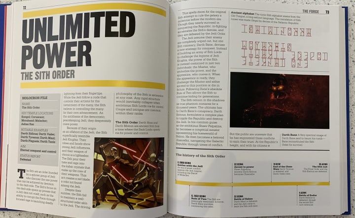 “The Sith’s focus on the dark opens up powers that a Jedi dare not wield, such as the ability to corrupt the Force through focused rage to launching deadly lightning from their fingertips.”