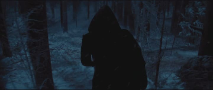 First of all, that lightsaber is insane. Who cares about safety and fingers! The snowy forest could very well be the Forest Moon of Endor. Not sure...The cloaked Sith in the snow with a fiery cross-shaped lightsaber broadsword could be Adam Driver. Has a lot of Darth Revan structure involved in the making...