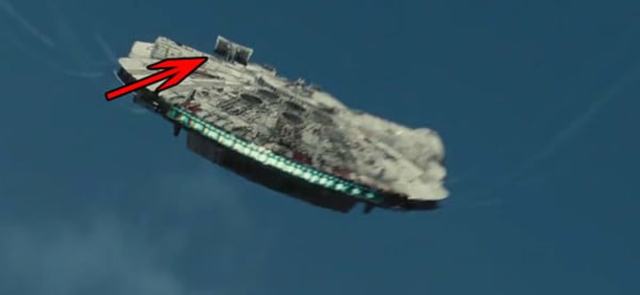Falcon is clearly missing the dish that was knocked off in Return of the Jedi...maybe not. I feel a little dizzy!