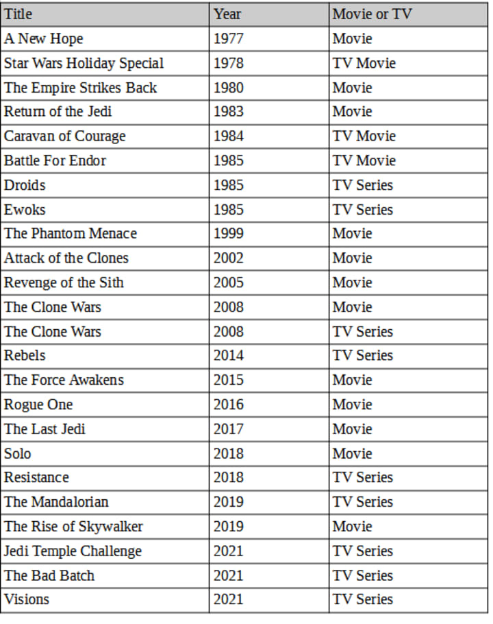 A long time ago, in a galaxy far, far away... I was going to start by being clever and saying it wasn't long ago. However, Star Wars first burst onto cinema screens in 1977, 45 years ago, so I guess it really was! Everything kicked off with that one movie. I have been a Star Wars fan since I first saw A New Hope in 1978 when it had its mainstream release in the UK (well, it was just Star Wars back then) and have been swimming in movies and TV content ever since. It's not necessarily all been a good thing, though. So which is better, the movies or TV content?