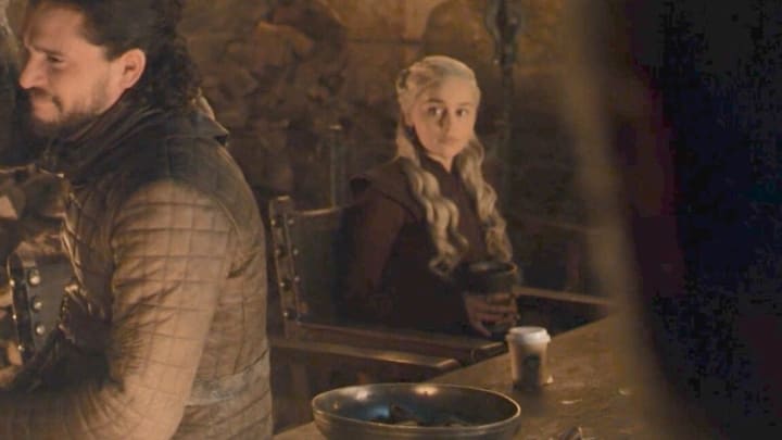 One of the most famous recent examples of this is in the Game of Thrones season 8 episode "The Last of the Starks," in which a Starbucks coffee cup appears on set during one of the scenes.