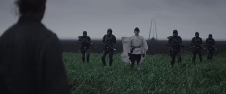 This stunning and atmospheric trailer opens with the kidnapping of Mads Mikkelsen's Galen Erso. It seems that Galen Erso is a scientist of remarkable ability and, to save his daughter from harm, he agrees to play a crucial role in the development of the Death Star. We already knew that the main plot of Rogue One would kick off with Erso, horrified at the Empire's devastating superweapon, leaking news of a major weapons test to the Rebellion. This is why Felicity Jones's Jyn Erso is such a central character in Rogue One; her ties to her father make her the best operative the Rebellion can possibly send out on the covert mission to steal the Death Star plans.