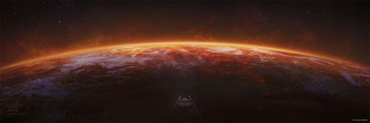 "Mustafar presented different opportunities, like whether to include the nearby gas giant Jestefad in the background, but ultimately I felt it took away from the relatively small but hellish planet. I enjoyed detailing rivers of lava and solar flare-like atmosphere."