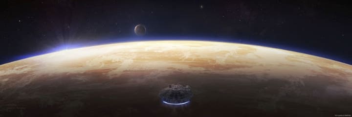 "Tatooine was all about capturing the iconic Millennium Falcon approaching the planet where it all started for a lot of us. Because Tatooine has two suns and three moons, I had a bit of a dilemma in choosing what to include and ultimately landed on what you see, again coming back to what best represents the movies. It was such a privilege to paint this planet knowing how much it means to so many people, including myself."