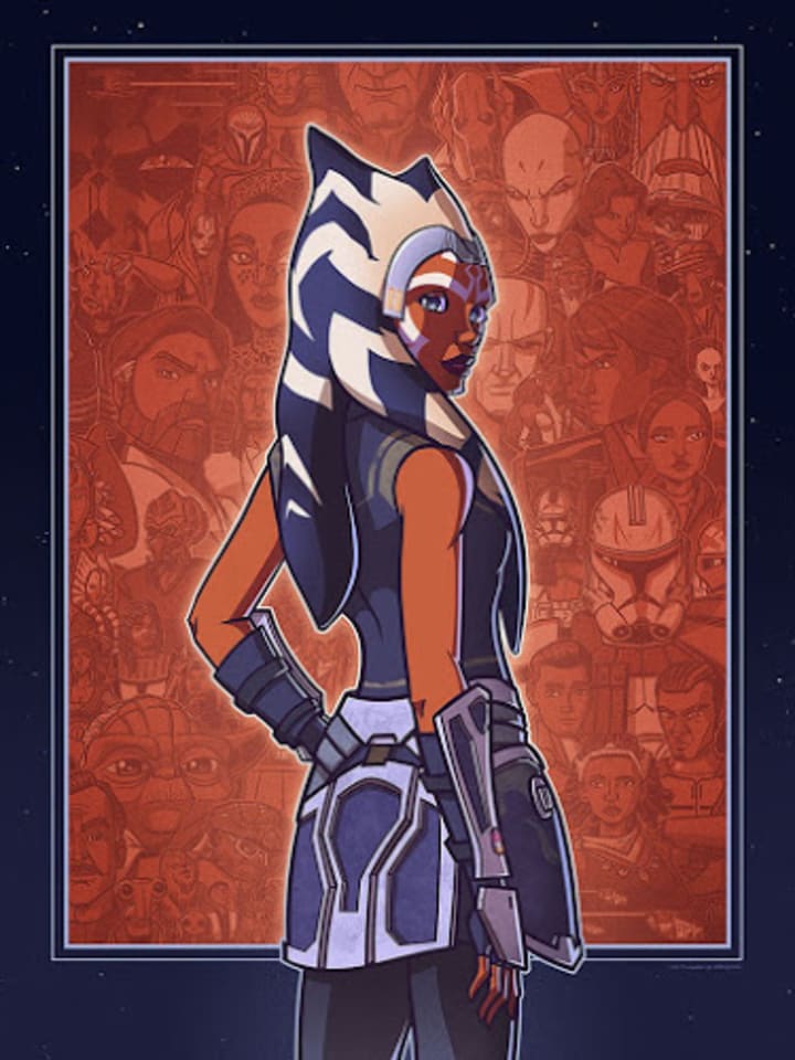 In addition to the three planet posters, artist Joe Hogan designed this exclusive Ahsoka Tano print titled A Padawan's Journey as a tribute to his favorite character from Star Wars: The Clone Wars. He spoke about how meaningful the series is to him and how impactful its been in his art journey, saying: