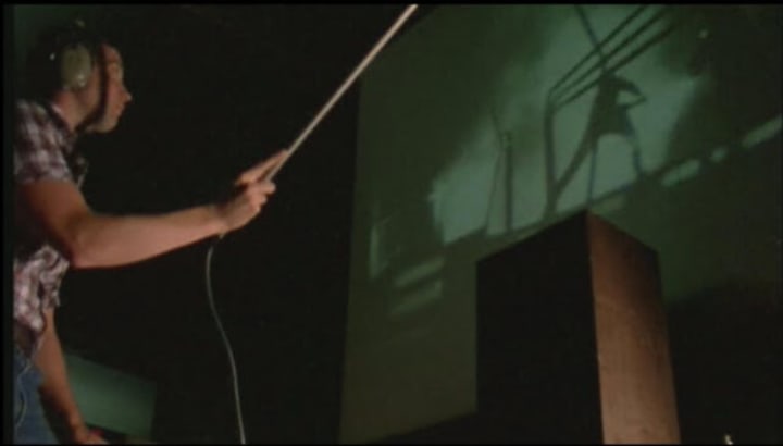 Today, we use computer programs to create sounds. Back then, Burtt would take a sound made by a random object, and put it together with another sound. The result was the new futuristic sounds for the galaxy far, far away. For the tell-tale hum of the lightsaber, the first sound Burtt created for the movies, he mixed the sound of an old 35mm theater film projector on standby with the sound of the feedback buzz created by a broken microphone cable on a tape recorder moving close to a television speaker. No one had ever heard this novel sound before. Burtt did not contend with the basic sound of a stationary lightsaber. For the moving lightsaber, he moved a microphone around the speaker, playing the base sound of the lightsaber, creating the sound of doppler effect. As Burtt whizzed the microphone through the air, you could hear and feel the lightsaber blade move over you.