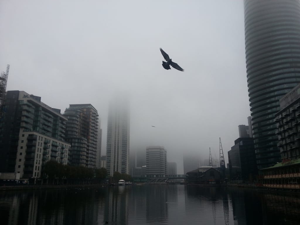 Douglas meanwhile found the sky above Liverpool Street to be cluttered with odd angular buildings, crystal palaces of a future revealed to him and him only. He’d been invited into a newfound secret as much as Eleanor had been invited in on one long shared, whispers spread about a bygone something that people wanted to experience if only they’d had the powers needed. It was a vicarious thrill she was feeling, while Douglas was experiencing something more victorious instead. He’d risen to heights of reality as tall as the countless skyscrapers around him, having got the jump on everyone else he’d left behind in 1998. A soggy newspaper on the floor read the date as January 26th, 2018. BREXIT PROTEST HIT BY FROG THUGS IN ISIS WEAR proclaimed the headline, whatever that could mean.