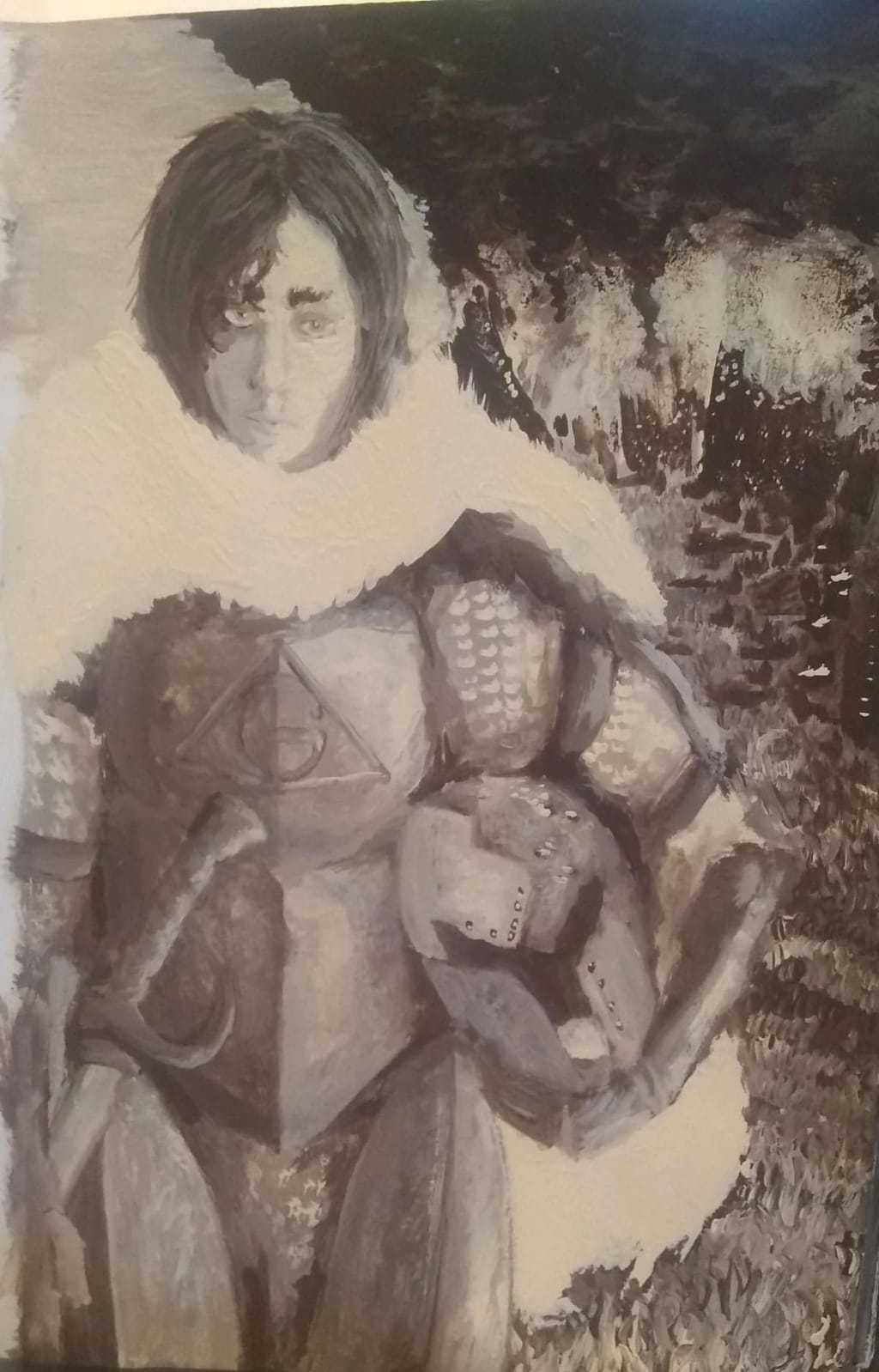 Shiloh's head dropped. Her eyes fixed on her own knees, which were resting in a pool of cold blood. Around her, parts of the others were scattered about; half-eaten and disregarded. Maldrake stood in front of Shiloh, big as a boulder. With leathery, bloodstained skin and a rusted cleaver on his hip, he lumbered towards her. As he leaned in close to her face his rancid breath made her stomach turn, and she wretched on the boy in her lap. Sadness and shame filled her as the monster laughed with joyful abandon, just inches from her nose. "I wouldn't make it hurt so badly, if you weren't so damn cute when you cried," he whispered in her ear. As he did, his form shifted into that of Gorgahl. He kissed her on the forehead, right before gripping a handful of her hair and forcefully slamming her onto the cold ground.