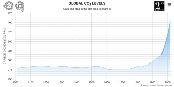 With CO2 levels are the highest they've been in over 400,000 years and rising exponentially, climate change is a very real threat to the survival of our species. One of the great hurdles of the next generation will be surviving in a rapidly changing world. In the last 20 years we've seen devastating changes to the global ecosystem, put simply, the planet is slowing becoming less habitable for human life.