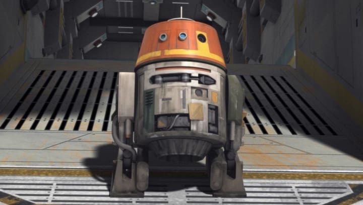 Created especially for Star War Rebels (but briefly glimpsed in Rogue One at the Rebel Base on Yavin 4), Chopper is a grouchy and stubborn but still multi-talented and faithful astromech droid who serves the Ghost crew in their private struggle against the Empire.