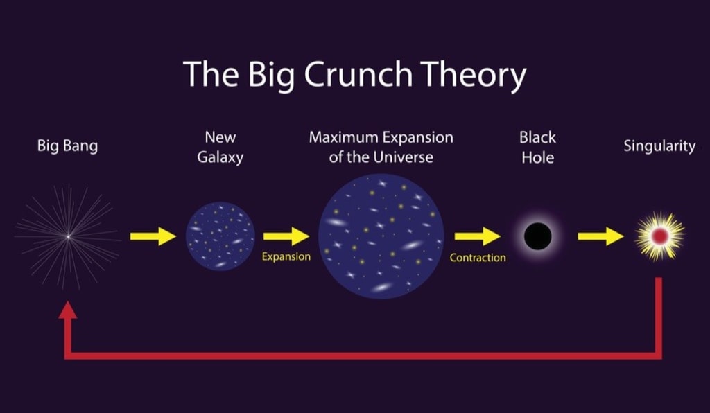 We've all heard about the Big Bang, and I am really sad that the series has ended. Well, here, of course, I'm talking about the Big Bang that actually started everything. Again, most people have heard of that, but what do you know about the Big Crunch? And no, I'm not talking about some random candy bar. While most scientists believe that our universe began with a massive burst of energy, opinions remain divided about how everything will one day come to an end. There's a range of theories, such as the Big Freeze and the Big Rip, but the one considered to be the most likely scenario is the Big Crunch.