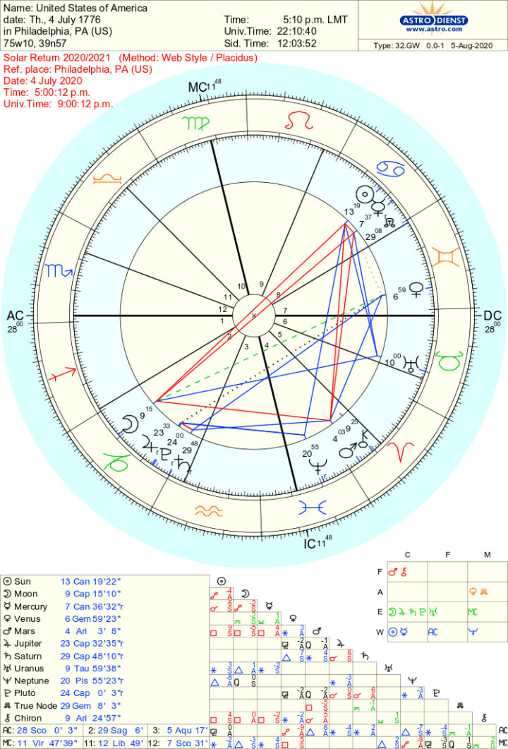 The Birth Chart & Solar Return (2020-2021) of the United States