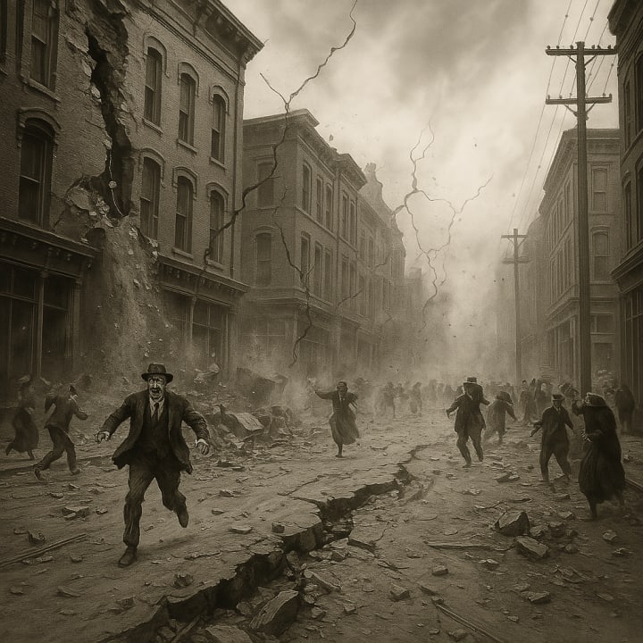 Then, strange events began to unfold. Metal equipment clanged together, the floor started to tremble, and cracks appeared in the walls. Panic spread throughout the neighborhood as windows shattered and people rushed into the streets, convinced that an earthquake had struck.