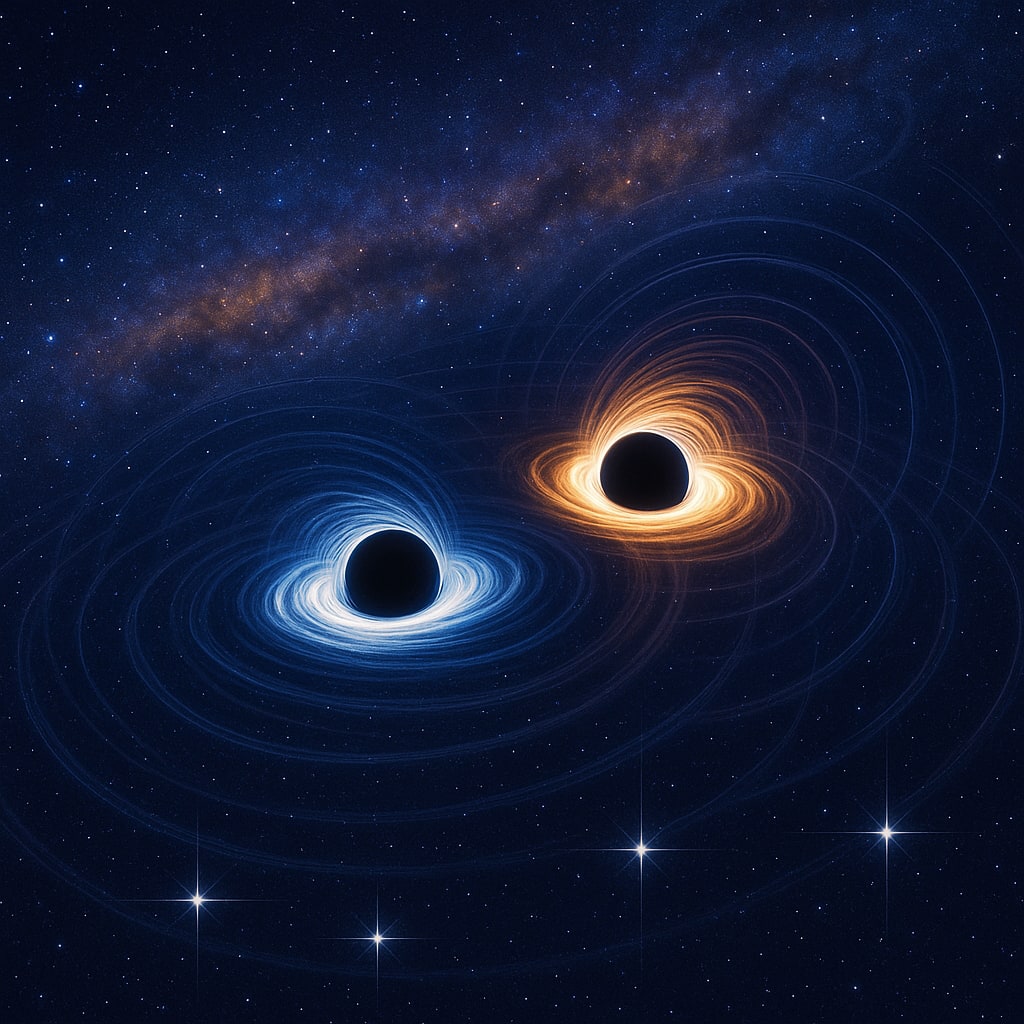 Low-frequency gravitational waves, however, are a different story. These signals are stretched across thousands to millions of years, far too slow for LIGO’s laser detectors. Their origin lies in the most massive and dramatic objects we know: supermassive black holes, millions or even billions of times the mass of the Sun. When galaxies collide, their central black holes begin a cosmic dance, spiraling closer together over eons before eventually merging. Each pair contributes a deep “note” to the symphony of the Universe, forming a background hum that fills the cosmos.