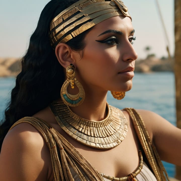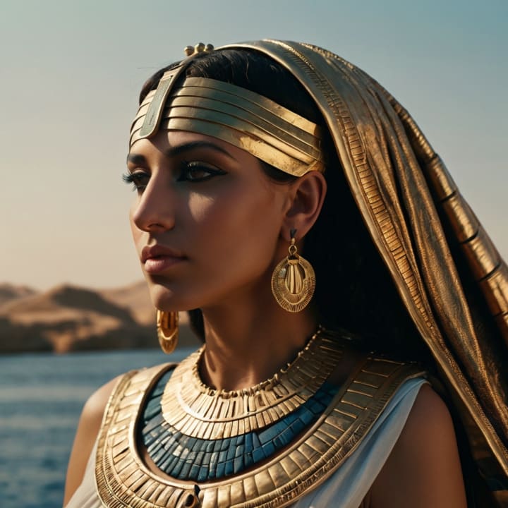 Using these references, AI art reimagines her as she was: part Greek, part Egyptian, royal by blood, strategic by necessity. Her beauty wasn't in symmetry — it was in presence.