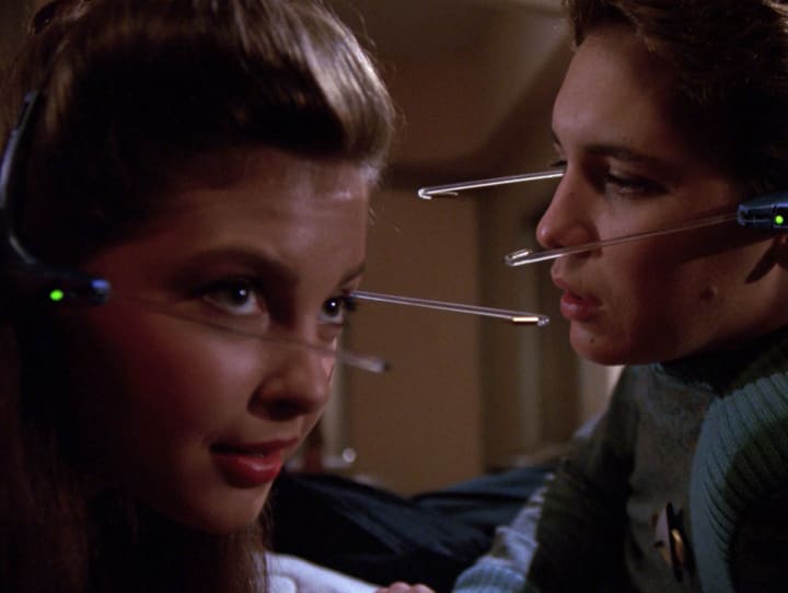 In the TNG episode "The Game," Cadet Wesley Crusher, visiting the Enterprise-D, fresh from Starfleet Academy, stumbles upon a dastardly alien conspiracy— aliens are morphing Captain Picard’s crew into mindless, video game playing zombies. The Walking Dead meets The Gaming Starfleet in this quirky cautionary tale.