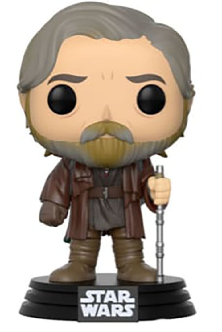 The Funko Pop! figure for Luke depicts him in a new garb we've yet to see him wear, along with an odd metal staff with him instead of a lightsaber. The details surrounding it remain a mystery but Making Star Wars describes it as a "lightning staff" that apparently shoots lightning to keep pests away on Anch-To—most likely Porgs.