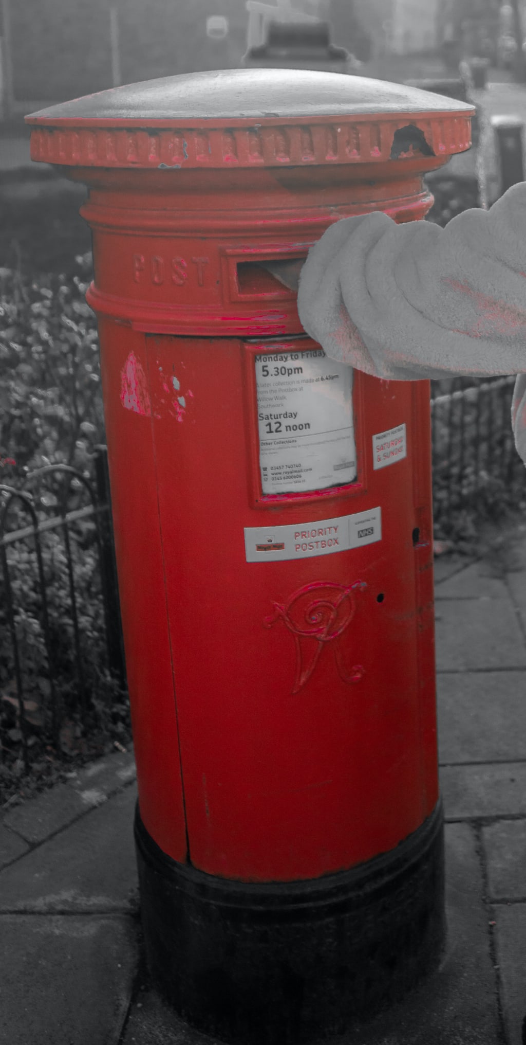 4:50pm on the clock – traffic so much traffic, I can see the post box at the top of the road. "I’ll walk from here driver" - actually I’ll run! A suspicious man gets into his car parked on double yellow lines opposite the post box and drives off as if he had just committed a murder.