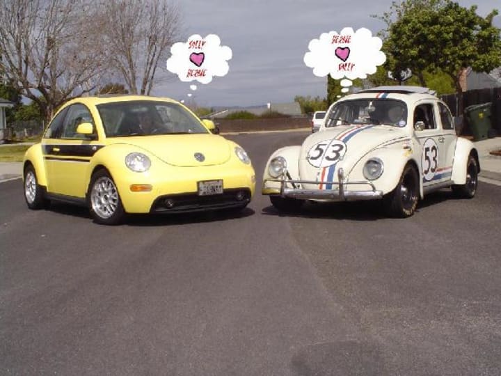 On the parking lot, there was this shiny, glamorous, yellow new beetle. He took a replacement part from its engine to place it on Herbie’s damaged left valve cam cover. Long story short, it worked, and he won.