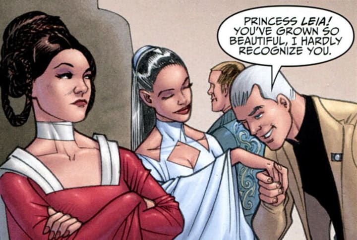 The daughter of Bail Organa’s aide Sheltay Retrac, Winter is raised as a sister and companion to Princess Leia on Alderaan. Due to her ladylike grace in contrast with Leia’s tomboy nature, many often mistake her for the princess. The two employ their similar looks with Winter (distinguished by her white hair) disguising herself as Leia so that the latter can sneak out of the palace. As Leia becomes more involved with the Rebel Alliance, Winter’s talent is perfect for a career in Rebel intelligence. Her stoic demeanor allows her to complete her covert missions as a spy. Her holographic and audiographic memory allow her to remember everything perfectly. However, while other Alderaanians’ memory of the planet’s destruction fades over time, Winter remembers the painful experience in complete detail forever.