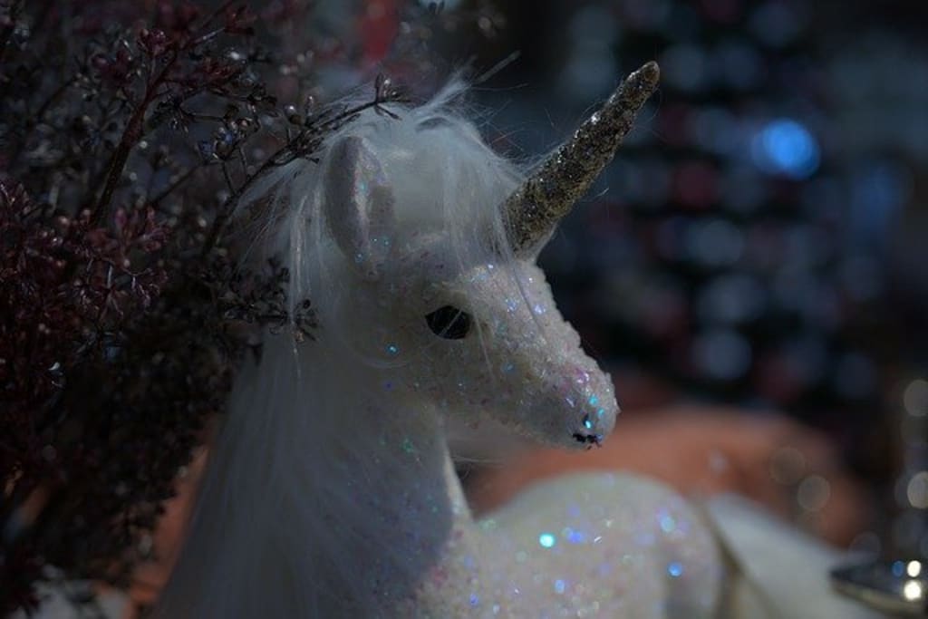 I crept towards the bookcase. He was right. The one I had seen in pieces outside was sitting in its usual place. It's nostrils flaring, purple ribbons streaming, and its silver hooves still reflecting the lights above. It was intact.