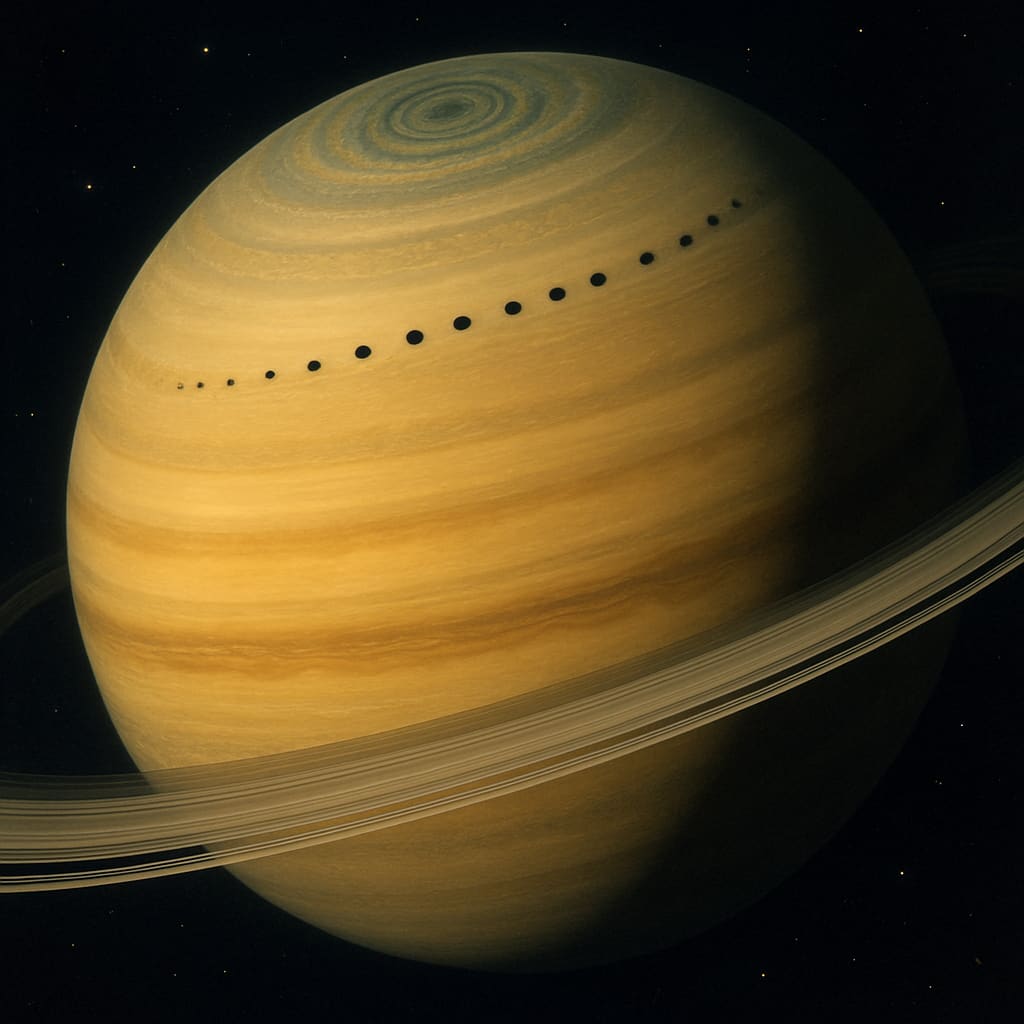 On the processed infrared images, astronomers noticed chains of dark spots aligned near Saturn’s pole. Each one was small compared to the vastness of the planet, but together they formed repeating patterns that looked almost deliberate. Imagine holding a string of beads against the backdrop of Saturn’s swirling clouds—that’s what researchers saw.