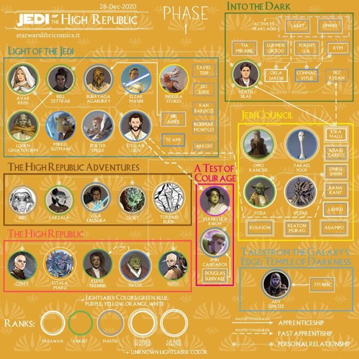 It seems that Star Wars: The High Republic is kicking off with a large cast of Jedi, to say nothing of the other characters we are sure to meet, and one has to wonder if this cast will begin to be whittle down to a tighter focus on certain characters. Maybe this chart, and the info it holds, will reveal what characters will get the most attention based on their connections to other Jedi.