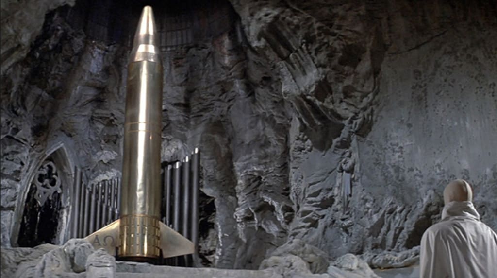 In 1970, Beneath the Planet of the Apes was the second film in the old Apes series after Planet of the Apes in 1968. In Beneath, an astronaut named Brent stumbles upon the ruins of New York City in a plateau desert, restricted of entry by the apes known as the "Forbidden Zone." Underneath the city, Brent finds a subterranean society of radioactive mutated humans who live inside the ruins of St. Patrick's Cathedral where they pray to and worship a nuclear missile called the "Alpha Omega Bomb." Sound familiar?