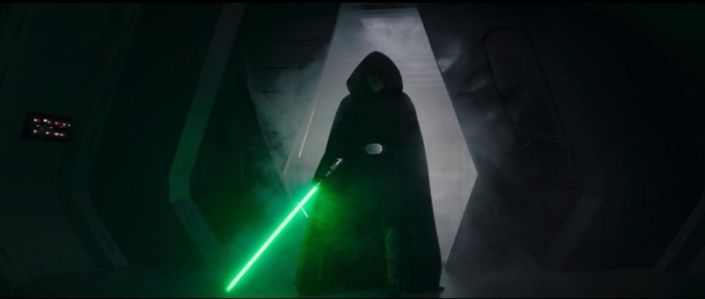 Well, all speculation ended when a lone X-wing starfighter flew into Moff Gideon’s ship at the end of “Chapter 16: The Rescue”. It turned out that Luke Skywalker was the Jedi who made the connection with Grogu. And now that Grogu was fully linked to the Force, Luke was able to track him down. Luke Skywalker walks through the doors of the bridge, removes his hood, and we see… Mark Hamill! Well, sort of.