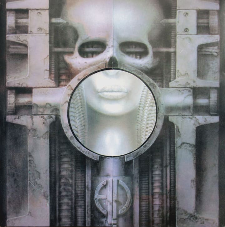 1973 – Emerson, Lake and Palmer releases Brain Salad Surgery, the lyrics of which deal, at least in part, with a future war between humans and computers. The album art—a human skull on the cover, a fleshier version with alien features on the inside—is designed by H.R. Giger, who later wins an Academy Award for his design work on Alien and is inducted, in 2013, into the Science Fiction and Fantasy Hall of Fame. He, too, signs on for Jodorowsky’s doomed Dune.