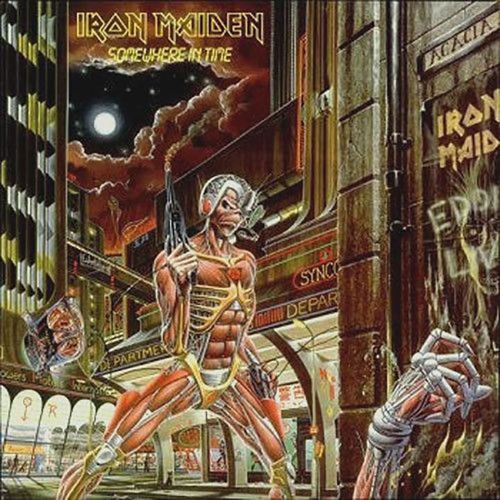In 1986, the band releases platinum-selling Somewhere In Time, with a cover by Derek Riggs that clearly pays homage to Blade Runner.