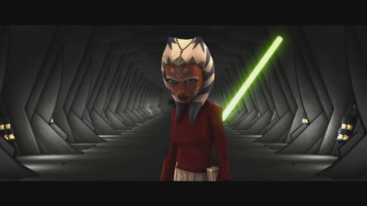 Over the years Ahsoka trained with the Jedi and her powers grew strong in the Force. When the time came, she took part in the Jedi tradition and journeyed to the planet Ilum for her first kyber crystal to power her lightsaber. While she managed to acquire her crystal, she did have some difficulty as the sun began to set, freezing the opening to the cave in which the crystals were held. Calming herself, she remembered the teachings of Master Yoda and was able to claim her prize.