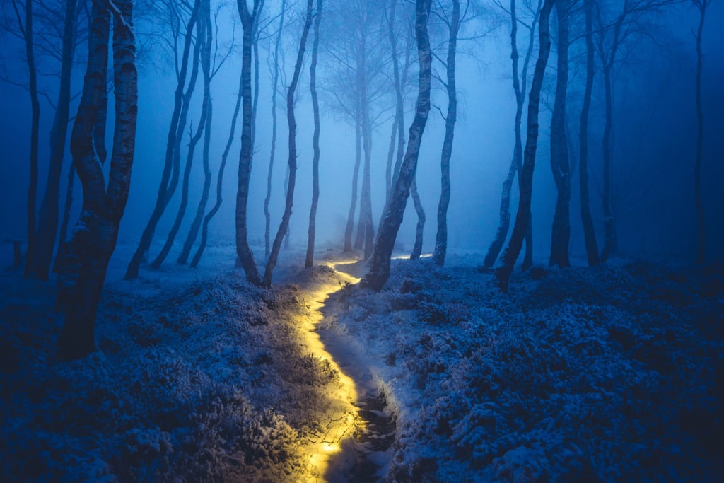 That night, in deep sorrow from the rejection and misunderstanding, the woman ventured further than ever from the town just to avoid the wrath of any neighbors. She came upon a large, mossy rock just along the dirt road leading into town. Seating herself upon the rock, she mustered a smile even through all her pain, whispered a few magic words, and produced dancing lights from her fingertips. Spirals of silvery moonlight twirling upon her palms, they rang like chimes in the breeze.