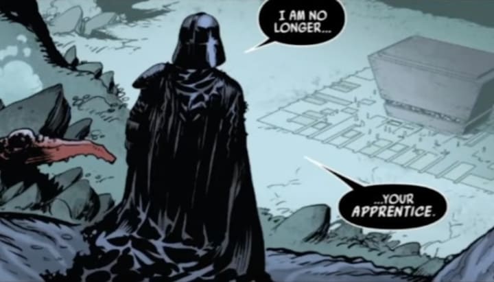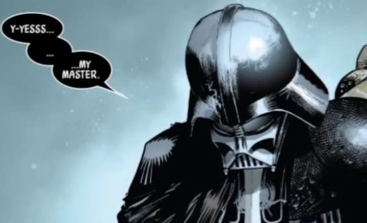 But now, with Darth Vader #21, the Dark Lord has plans of his own. Upon uncovering Ochi's secret loyalty to Crimson Dawn, Vader followed Ochi to Naboo, where he intended to meet with Sabé, who had recently joined Crimson Dawn herself. After commending Ochi for leading him to Sabé, which Ochi quickly went along with, Vader confronted Sabé and informed her that he now was Crimson Dawn. This ending has left many fans speculating what the Dark Lord could mean by this. For me, the answer couldn't be more clear. Darth Vader is taking over Crimson Dawn and using it to go against the Emperor.