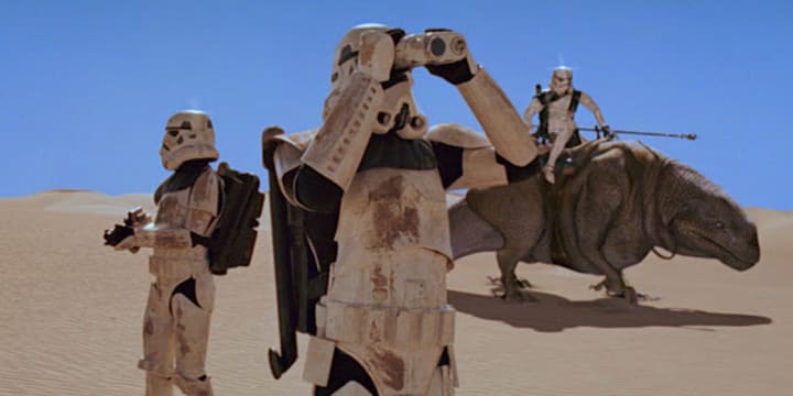 “These blast points [are] too accurate for sand people. Only Imperial stormtroopers are so precise.”