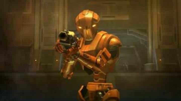 Listen meatbag! HK-47 should be in Star Wars canon. Failure to do so will result in your termination! HK-47 was a Hunter-Killer assassin droid built by Revan towards the end of the Mandalorian Wars, where it dispatched his enemies with absolute joy. HK-47 was such a popular character. He won "Original Character of the Year" in the 2004 Game Developers Choice Awards and "NPC of the Year" award from the 2003 Computer Gaming Awards.