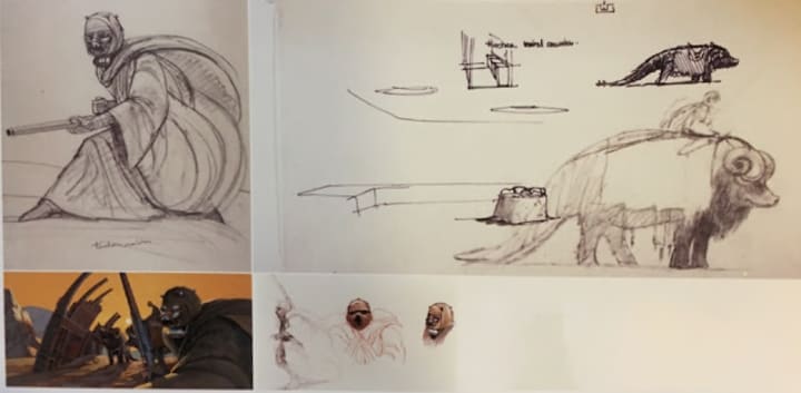 Unlike many other characters and creatures, the Sand People didn’t change very much from their first concept to the finished film.